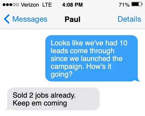 But don't take my word for it. Here's a client that we used this exact strategy for who sold 2 jobs out of the first 10 leads he got: